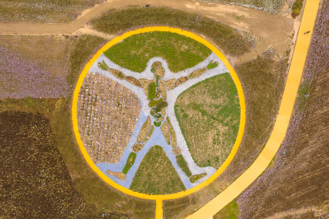 景區內的神農藥田從空中俯瞰,一個巨大的人形圖案清晰的出現在花海之中。依據《神農本草經》“養命應天、養性應人、治病應地”的三品分類,由國寶級中醫大師精選29味華北地區適生中草藥,因其性味歸經、藥理療效,布置于對應人體經絡和臟器的35塊種植區內,形成身高48米的巨大人形藥田。藥田漫步,可在本草清芬中體驗中醫藥的神奇,增進人的生命力。