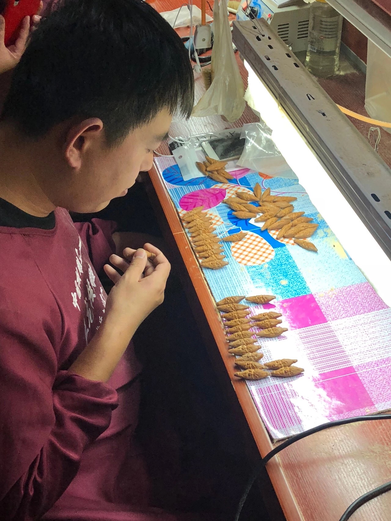 中國核雕藝術源遠流長,其中規模最大的當屬廊坊市的永清核雕,2019年,永清被授予“中國核雕之鄉”的榮譽稱號。永清縣核雕小鎮的后劉武營村是京津地區知名的核雕專業村,核雕技藝在該村已經傳承了半個多世紀。目前,村莊中多數村民從事核雕產業,核雕作品以佛像、器形、鳥獸造型為主,雕工精湛,暢銷國內外市場。采訪團先后參觀了當地的核雕生產車間和核雕館,了解了永清核雕的制作工藝和發展歷史。
