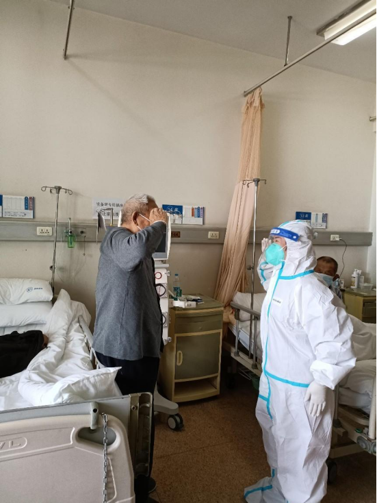 老人是一位1948年入伍的老軍人,轉入浦南醫院時剛剛新冠病毒檢測陽轉陰??吹竭@位久經滄桑的老英雄,同樣是退伍軍人的韓志雙忍不住對他多加關懷,忙碌間隙就給老人教授腎病知識,叮囑他注意日常生活中的小習慣。
