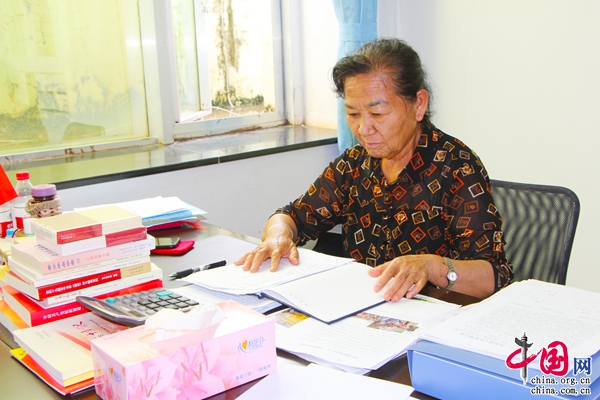 (羅玲在辦公室整理材料 羅宏偉攝)