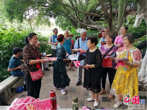 (羅玲(中)向“五老”宣傳國家政策樂白道街道供圖)
