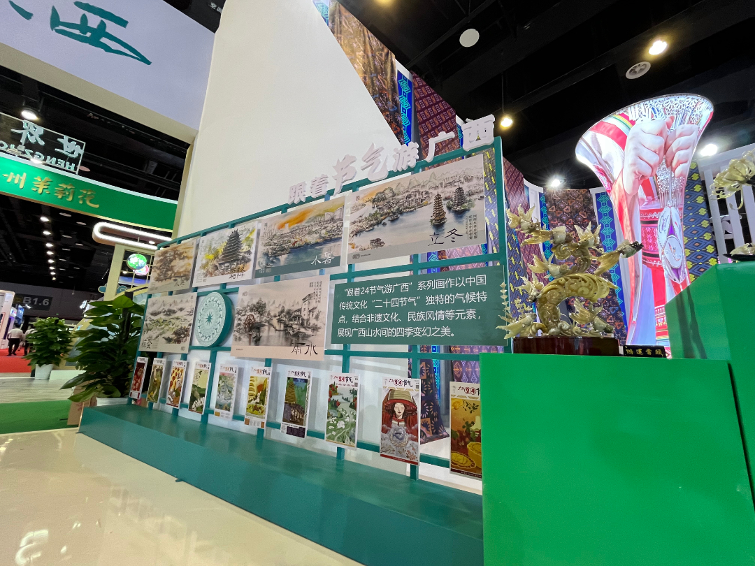 現場還展出了廣西14個設區市的文旅特色產品,產品涵蓋精品文創、特產好物、非遺特色、精美工藝品等。