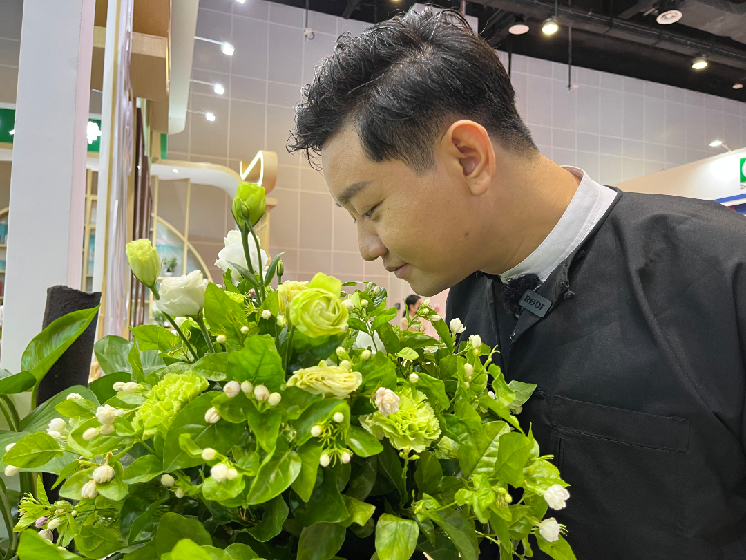 10朵茉莉花有6朵來自廣西橫州??吹綑M州茉莉花后,藺英振十分興奮,他表示,自己十分喜歡茉莉花香,見到久負盛名的橫州茉莉花一定要好好看看。