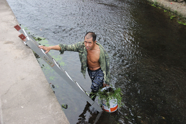 袁南京今年70歲,是浙江省龍游縣方門街社區的老黨員。2013年在街道找尋河道管護員的時候,退休在家的袁南京主動攬下了這份重擔,成為蓮湖溪方門街段的管護員,從此他與蓮湖溪的緣分就割不斷了。早上打撈,下午巡河,袁南京幾乎將所有時間都用在蓮湖溪上,他說,“就圖水質能好點,想讓子孫后代看到跟我們小時候一樣的蓮湖溪”。