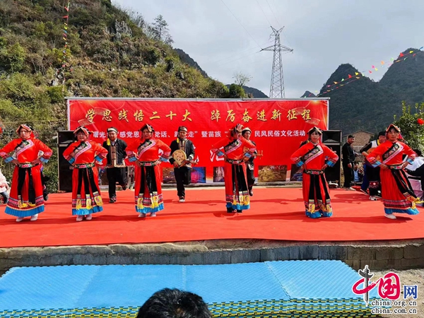 據悉,春節期間,曙光鄉各族群眾匯集到花山場進行文藝表演,舉辦美食展銷活動。具有苗族特色蘆笙舞、單人及多人舞、斗腳架、山歌角逐、斗雞、爬花桿、打陀螺、劃拳、斗牛等表演和鄉村特色美食悉數登場,為遠道而來的客人們獻上了一場場文化盛宴和一道道特色美食。