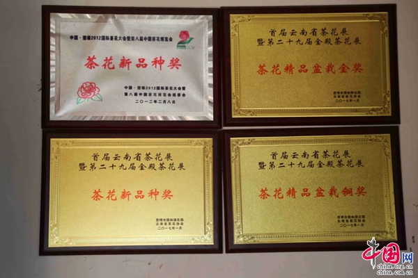 經過近十年的鉆研,蘭成新終于迎來了第一棵自己命名的山茶花—哀牢紅。并在2012年參加國際茶花大會,哀牢紅獲得國際茶花大會的新品種獎。