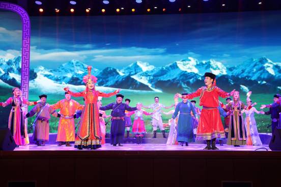 4月30日,溫泉縣文化中心華燈璀璨,歌聲悠揚。溫泉縣烏蘭牧騎仿佛從草原的深處走來,帶著青草芬芳、藍天清澈、駿馬馳騁和戈壁遼闊,為觀眾首次奉獻民族風情劇《戍邊情緣》。