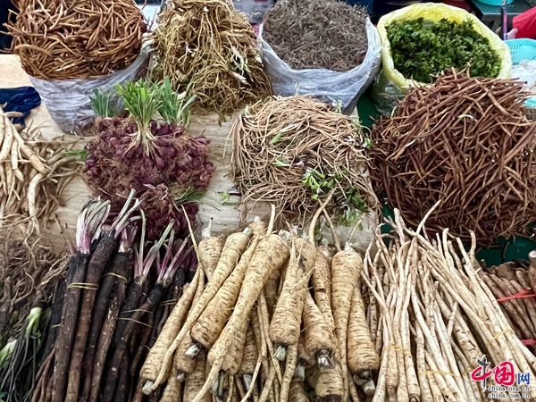 一歲一端午,一年一安康。每年端午,普洱人都有“吃藥根,換腸肚”的傳統習俗。端午節前后,大街小巷擺滿賣藥根的攤位,藥香滿街、人如潮涌,形成極有特色的端午藥市。