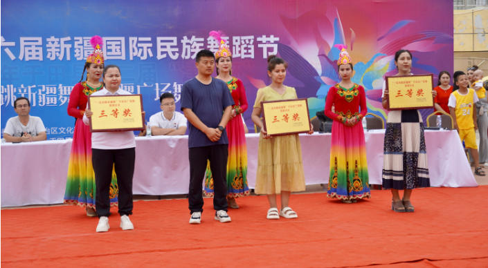 比賽評選出一、二、三等獎獲得者,縣文旅局黨組書記、副局長、縣委宣傳部副部長為獲獎代表隊頒發了獎牌。隨后,麥西來甫音樂響起,各參賽選手、演員和觀眾們自發的走向舞臺用舞蹈來表達心中的喜悅,此次活動也在夕陽下走向尾聲。