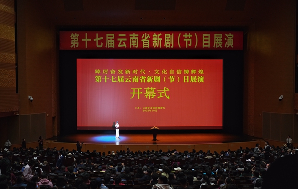 由云南省文化和旅游廳主辦的“踔厲奮發新時代·文化自信鑄輝煌”第十七屆云南省新?。ü潱┠空寡萦?0月8日晚在云南省大劇院拉開帷幕。