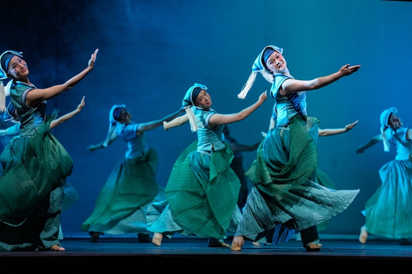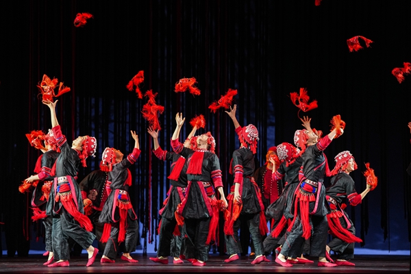 開幕式后,來賓和觀眾一起觀看了文山州民族文化工作團創作的舞劇《錦繡如歌》。該劇將紅色故事與壯族《坡芽歌書》相結合,有著鮮明的民族特色和地域色彩,是一部歌頌黨、歌頌邊疆民族大團結、歌頌英雄主義浪漫情懷的舞劇。