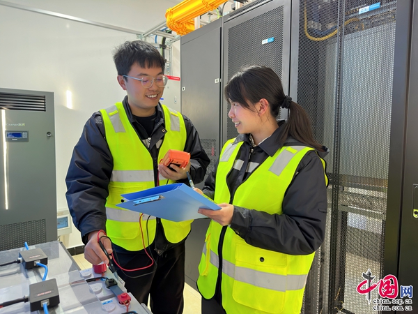 (周宇生和熊映芳一起巡視通信機房。王宇民/攝)