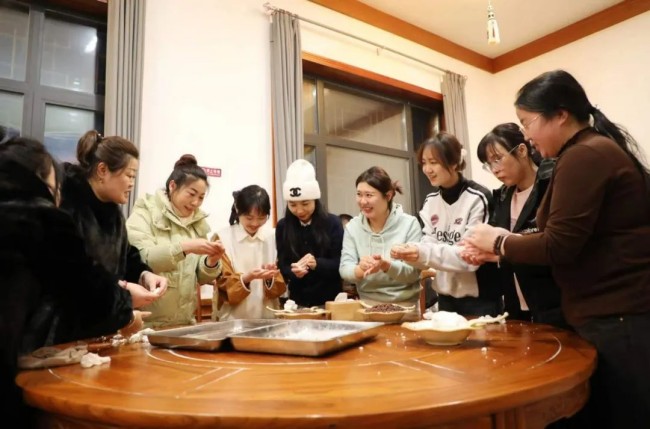 在東北農村,年底有殺年豬的習俗,家家戶戶互相幫忙,一場慶祝豐收團圓的“交響曲”就此唱響。分年豬、灌血腸……大鐵鍋里美食翻滾,鄰里、游客們共同體驗東北特色“殺豬菜”、包餃子,其樂融融。