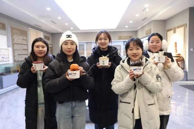 年味漸濃,年俗市集人氣旺。非遺文化體驗區,春聯、剪紙、皮具、年畫……多種非遺在這里集結陳展,傳統年俗文化在這里體現的淋漓盡致。糖葫蘆、爆米花、凍梨、凍柿子等特色小吃成為“美食單品”。