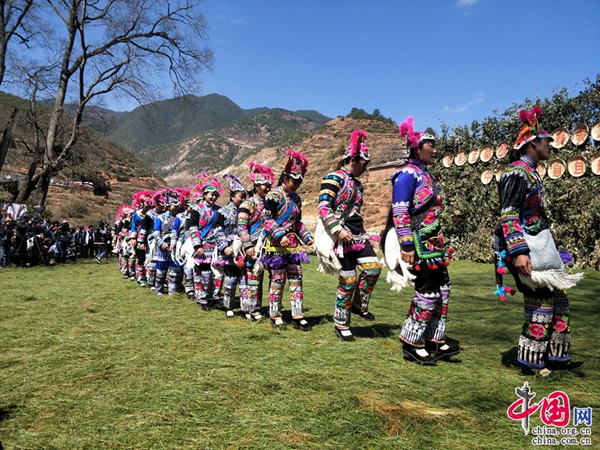 彝族賽裝節,發源于云南省楚雄州永仁縣直苴村,被稱為“世界最古老的T臺秀”。每年正月十五,“高山頂上茶花開,阿哥阿妹跳腳來,跳腳跳到黃灰冒,跳腳跳到太陽出……”就是賽裝場上的真實寫照。