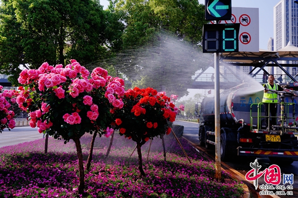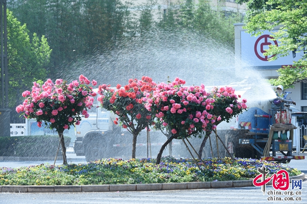 月季花被稱為花中皇后,一般為紅色或粉色,偶有白色和黃色,月季花因花色花形豐富,被廣泛用作城市園林綠化的打造。昆明市官渡區于2016、2017年在廣福路、國貿路等主要城市道路中央隔離帶內,種植了5318株樹狀月季,栽種品種多為“紅扇、粉扇”。樹狀月季主要是通過兩次以上嫁接薔薇而來,高度在50厘米到100厘米之間。經過幾年園林工人的精細化管護澆水、施肥、整形修剪、除蟲治病,如今國貿路、彩云北路、云秀路的樹狀月季花高大、粗壯,高度均在1.5米至2米左右。這些樹狀月季3月陸續開花,目前已進入盛開期,花量更多、花頭更大且艷麗,一株能開出30至100朵月季花,花期將持續到11月份。在此期間,能呈現出3次花潮,預計分別會出現在4月中旬到5月上旬;6月下旬至7月上旬;8月中下旬至9月上旬。(王正鵬段馨)