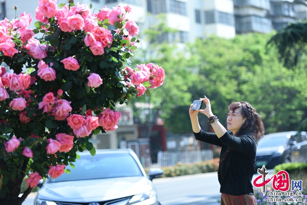 最美人間四月天 昆明官渡樹狀月季花璀璨綻放