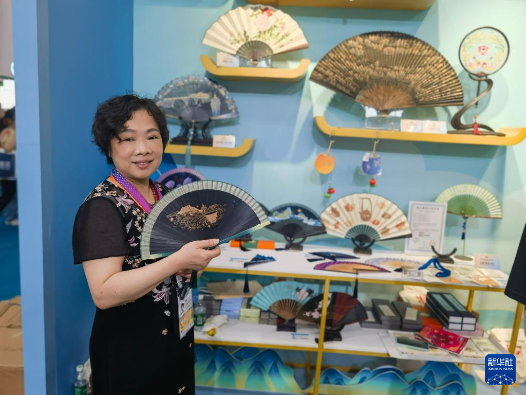 消博會上充滿現代元素的傳統竹扇。新華社記者趙葉蘋攝