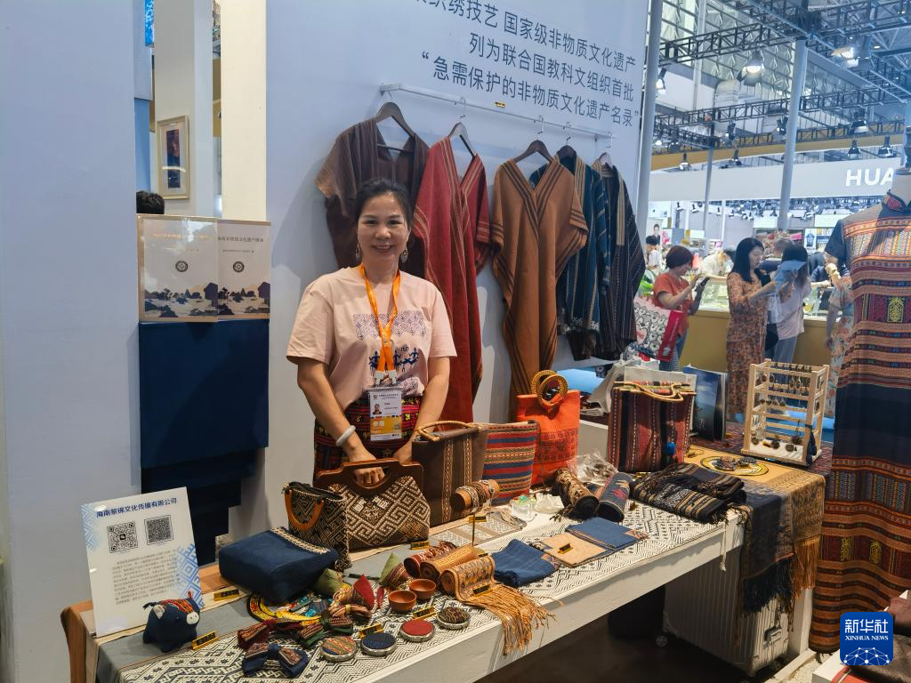 以傳統黎錦技藝開發出的文創產品亮相展臺。新華社記者趙葉蘋攝