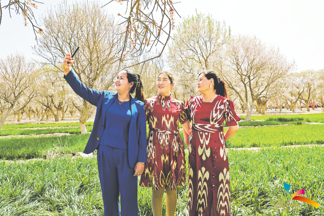 在疏附縣塔什米里克鄉木亞格杏花游園現場,企業、個體經營戶將杏干、核桃油等當地特色農副產品帶到現場展銷會上,深受游客歡迎。該鄉木亞格杏種植面積達3.2萬畝,去年產量達2.6萬噸,畝地年增收8000元-1.5萬元?!百p花經濟”不僅提升了“顏值”和內涵,更為鄉村旅游發展集聚了人氣,杏花成為當地群眾的“增收花”。