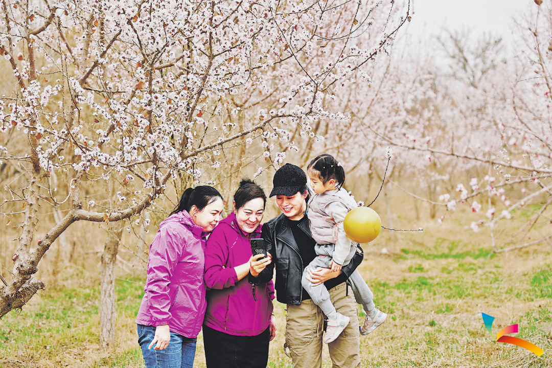 游客在英吉沙縣杏花林中欣賞拍下的美好瞬間。田亞蓮攝