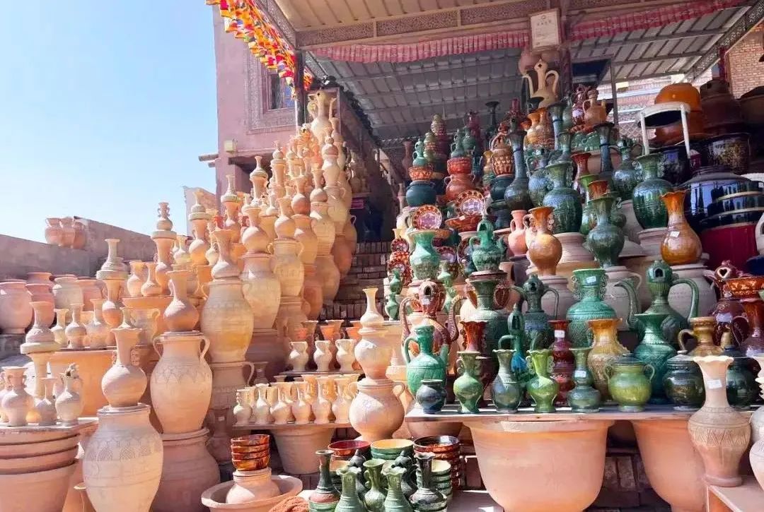 土陶工藝品是喀什重要的旅游紀念品之一。祖里甫卡爾?阿巴拜克力是國家級非遺代表性項目維吾爾族模制法土陶燒制技藝的傳承人,他設計的雕刻著飛龍在天、福祿雙至等紋樣的土陶器,顧客群人數不少。