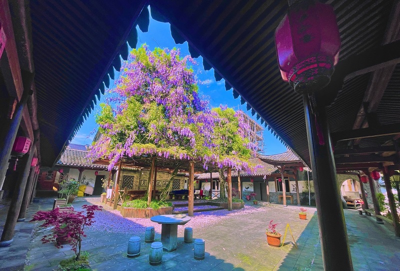 春日,在溫州市文成縣南田鎮,紫藤花開得剛剛好。