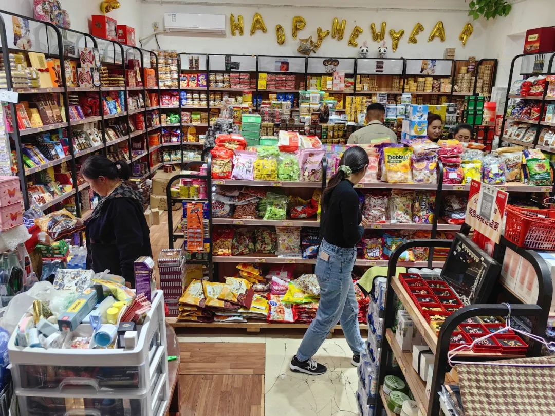 游客在阿拉山口綜保區進口食品銷售店購買商品。