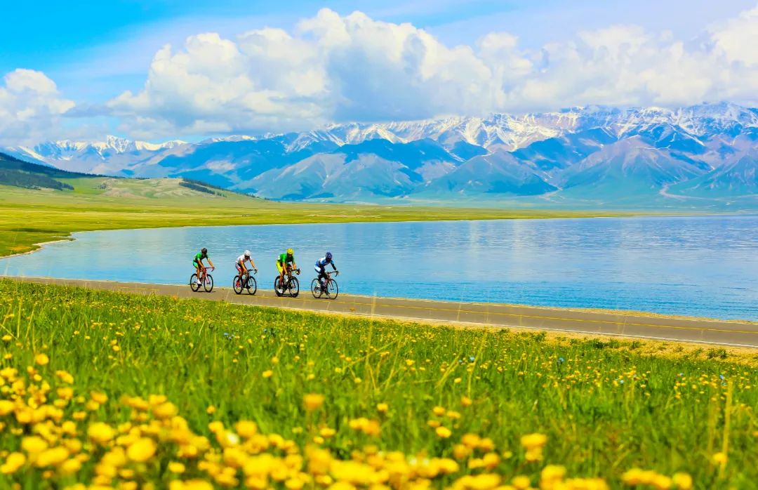 每年繁花怒放的時候,世界各地的自行車愛好者像候鳥一樣,從四面八方趕來,聚集在賽里木湖湖畔,上演一場力量與速度的比拼、激情與夢想的追逐。