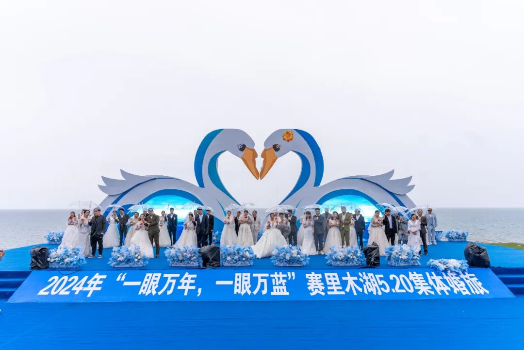 圖片發布到網上后,全國各地的網友被賽里木湖的美所陶醉,還有新人專程到賽里木湖拍攝婚紗照。就在剛剛過去的5月20日,26對新人在賽里木湖舉辦了集體婚禮。