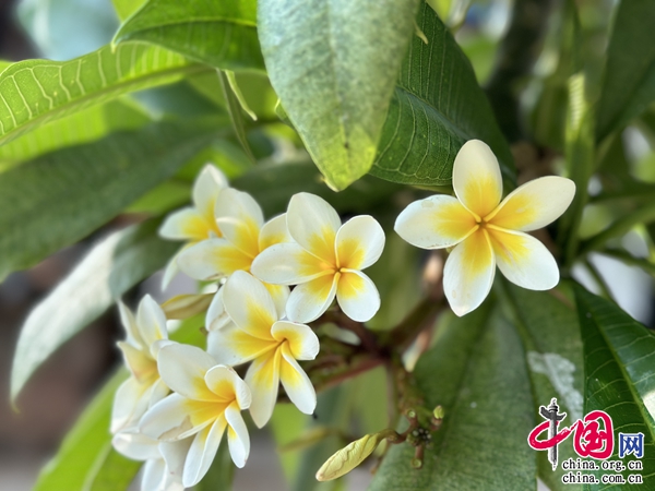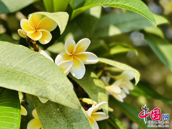 進入五月,云南省楚雄彝族自治州雙柏縣大麥地鎮底土村的雞蛋花悄然盛開,在炎炎熱夏里,一陣陣夾帶花香的微風拂過臉頰,清新怡人,拂去一身燥熱。
