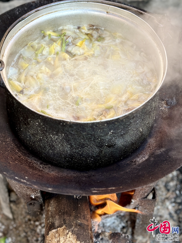 在底土村,生長了百年的雞蛋花樹默默見證了一代又一代人的生生不息,深深長在了人們心中,變成一種情感的寄托,讓人們在其間尋到生活的樂趣以及對美好未來的向往。散落的花朵經清水洗凈,柔軟香滑,或順水煮一鍋豆米雞蛋花湯,或加入紅椒爆炒一盤鮮辣雞蛋花,底土村的人們在賞花吃花中度過一個個唯美的夏季。