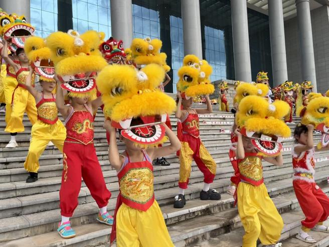 “鼓聲敲起來”“小獅子們點點頭”……在全國青少年美育示范展演——2024“全民美育”青少年民族舞蹈展演展示活動開幕前,云南省曲靖市宣威市文化館外聚集了許多演員。