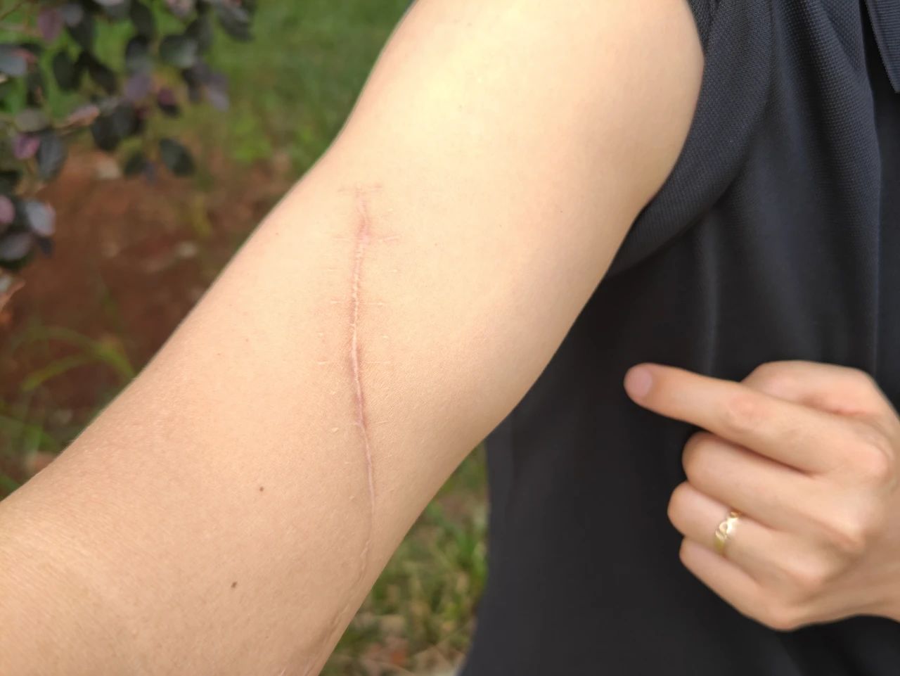 3個多小時的手術,縫了50多針,經過一年半的恢復期后,王祿勇才能抬起手臂,但大幅度的活動仍然受限,這道“S”形的傷疤永遠留在了他的手臂上,一遇上濕寒天氣,就隱隱作痛。