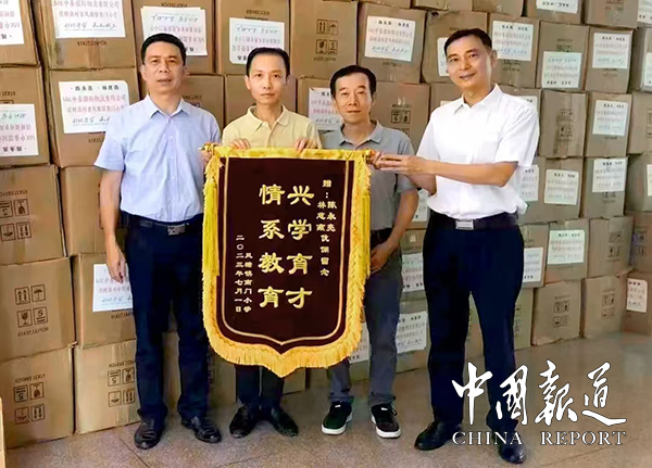 南門小學校長趙映生代表全校師生向委托人頒發了“情系教育、興學育才”錦旗,并向陳永亮、林慈燕伉儷的愛心善舉致謝,捐贈的空調、課桌椅等物資,將大大改善南門小學的教學環境,提升教學設備,廣大師生將不忘僑心僑愛,珍惜僑捐,用好物資,好好學習,再創佳績。