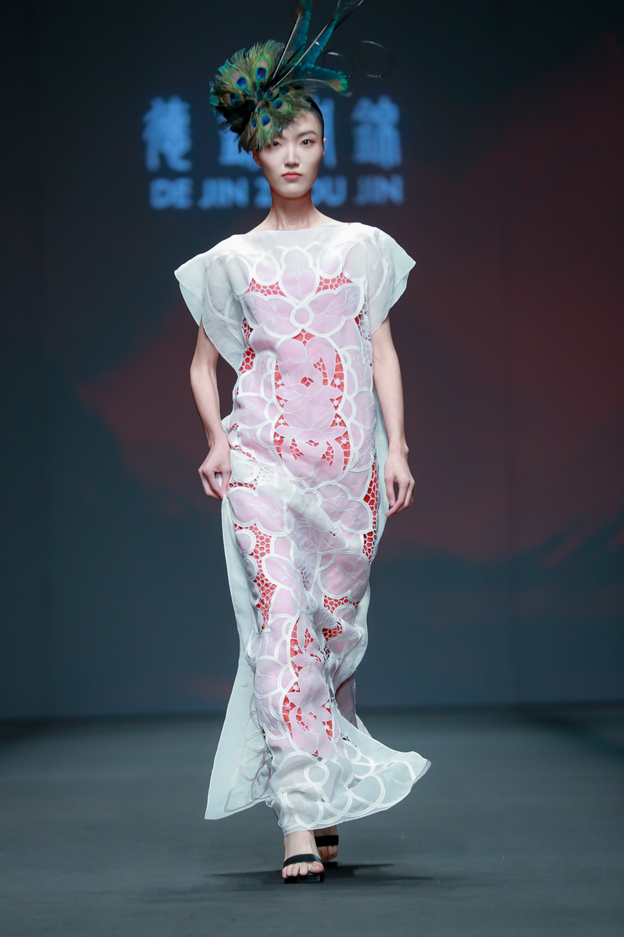 交互篇章,周錦女士攜手武漢紡協、武漢紡織大學紡織專業高材生陶文成,演繹了以織染繡為主題的創意作品,這也是紅安大布第一次通過時尚的途徑得到展示。