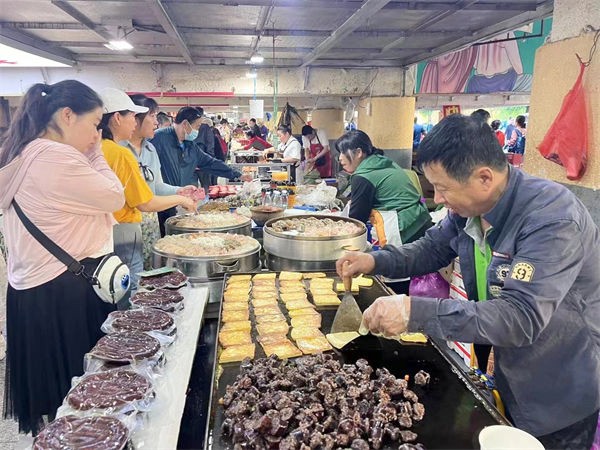 如今,延吉西市場成為游客來延的必經之地。打糕、米腸、米酒、明太魚等特色民俗食品,玲瑯滿目,讓游客們嘴里吃著,兜里帶著。游客曾先生說:“米腸味道挺好,糯糯香香的,買了四包,八十多塊錢,還挺實惠的?!?/p>