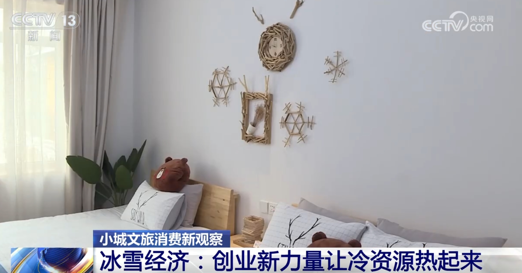 白樺樹做的屏風、白樺葉做的床頭畫、樺樹皮做的記事本等等,在漠河北極村這家白樺主題的民宿里,東北雪景和白樺樹營造的氛圍特別吸引人。民宿的主人是來自福建廈門的“90后”夫妻邱曉旭和邱小允。
