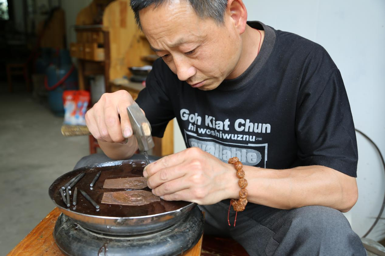 (李偉展示烏銅走銀制作技藝。何其祥/攝)