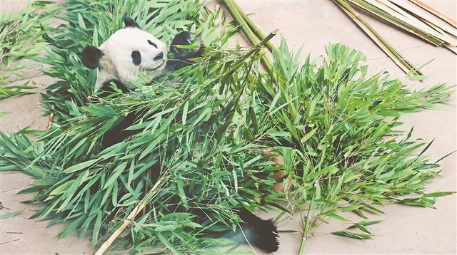 尤其是“佑佑”,曬著午后暖陽,坐在室外的雪地里,大口“狂炫”竹葉,這一口吃夠了,就尋覓著從雪里刨出來一根竹筍,秒變“剝筍小哥”?!坝佑印边€時不時停下來,盯著人群定格幾秒,仿佛是專門為游客拍照擺好姿勢,令不少南方小伙伴感嘆“開了眼界”。