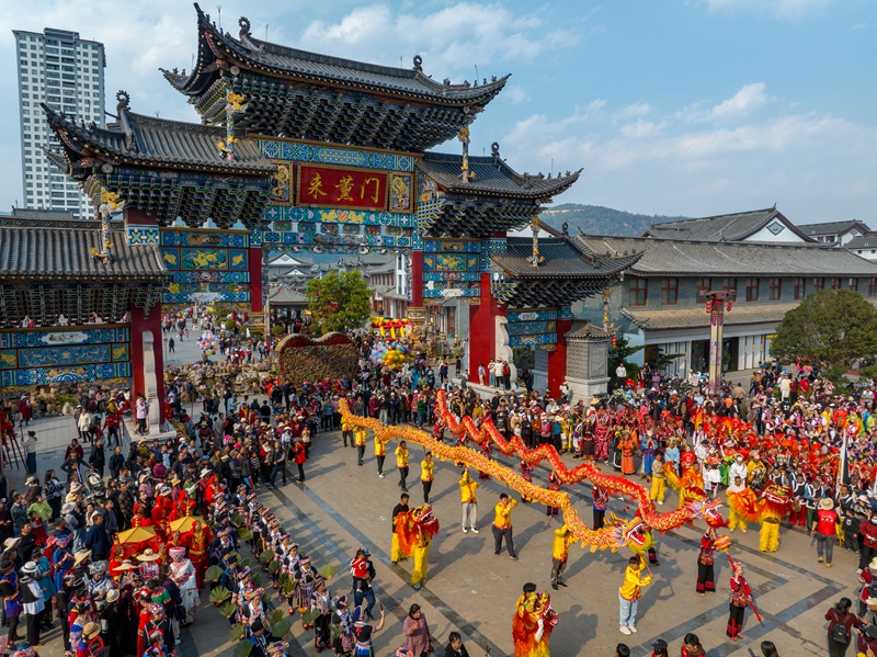 2月15日,“行走嶍峨?多彩非遺”2025年峨山開新街非遺(民俗)展演在云南省玉溪市峨山縣嶍峨古鎮開展,吸引了眾多市民和游客前來觀賞。