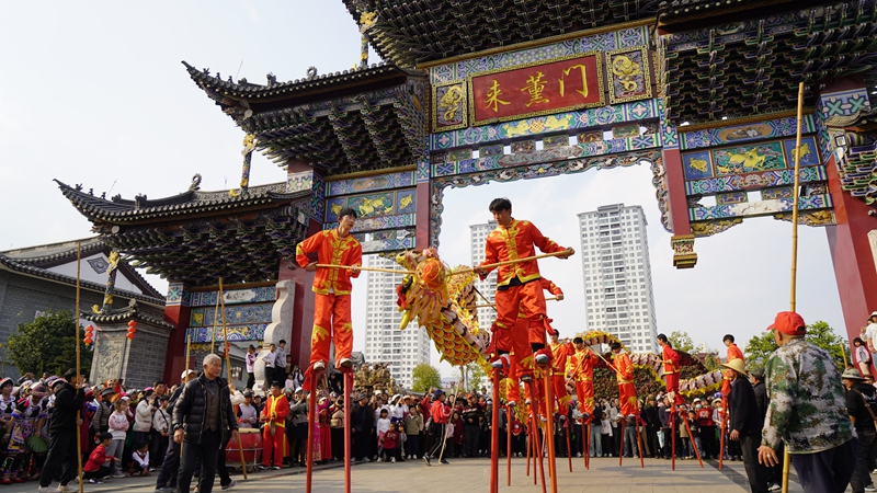 此次非遺(民俗)展演活動內容豐富、形式多樣,關索戲、踩高蹺、棕扇舞、花鼓舞、舞龍舞獅等傳統民俗表演精彩紛呈,表演者們身著精美的傳統服飾,手持各式道具,通過精湛的技藝和生動的表演,將非遺的獨特魅力展現得淋漓盡致。