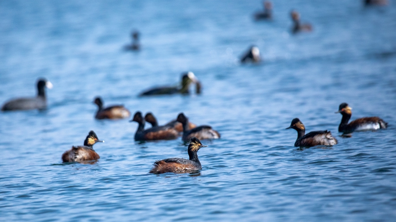 近日,云南省玉溪市澄江市撫仙湖迎來國家二級保護野生動物——黑頸鸊鷉的大規模種群,數量高達百余只。