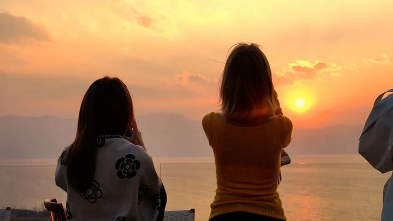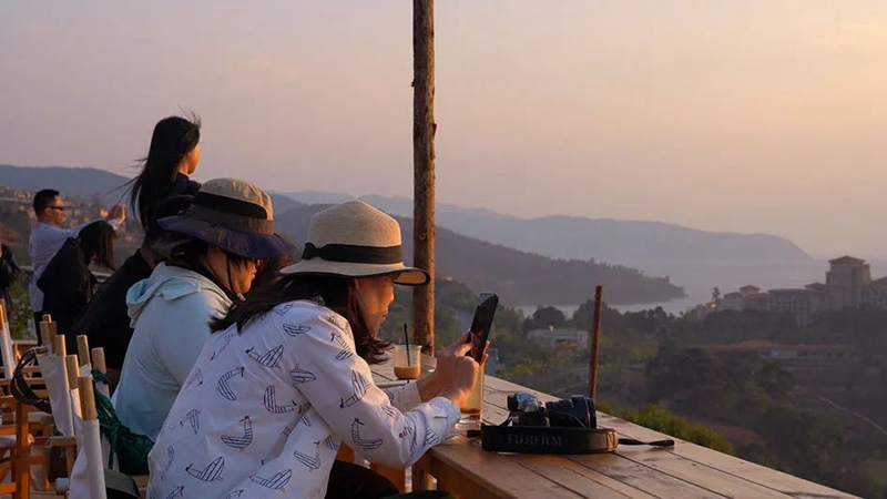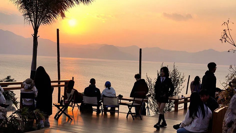 黃昏時分,咖啡館便成了最佳觀景臺,大家或是手持相機,準備捕捉那最美的瞬間;或是手捧咖啡,靜靜地享受這一刻的美好。這里變成一臺神奇的“黃昏販賣機”,快門聲此起彼伏,記錄下的不僅是這絕美的湖光日落,更是在撫仙湖旅居生活里的一段溫暖回憶。