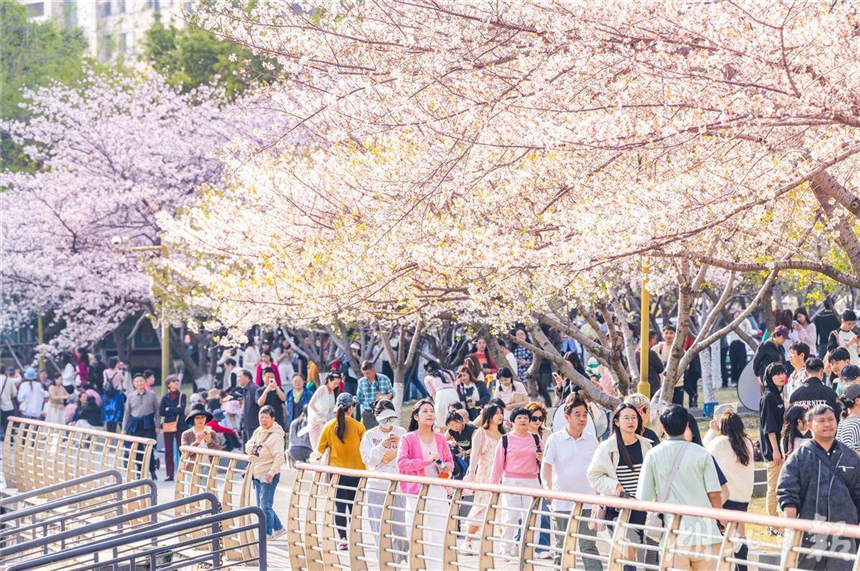 3月24日,武漢西北湖公園櫻花進入盛花期,如云似霞,吸引眾多游客拍照打卡。目前,武漢櫻花進入盛花期,全市公園景區和道路共有賞櫻點200余處。(湖北日報全媒記者 薛婷 攝)