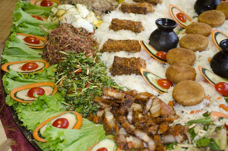 孔雀宴是德宏傣族景頗族自治州的代表性宴席。它以栩栩如生的孔雀造型為視覺核心,20余道菜品如孔雀開屏般鋪陳??兹傅奈鍖游舶痛淼潞甏鲎?、景頗族、德昂族、傈僳族、阿昌族五種少數民族,表達了人們對幸福生活、民族團結的追求,具有鮮明地域特色,也表示“孔雀開屏,迎八方賓客”。