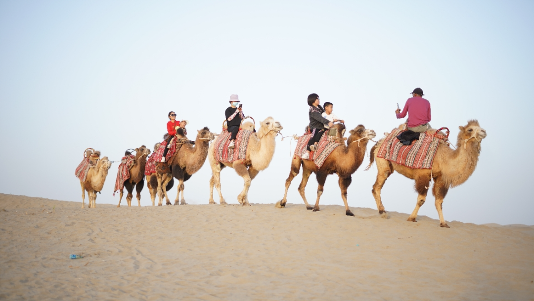 游客們體驗騎駱駝。麥蓋提縣融媒體中心供圖