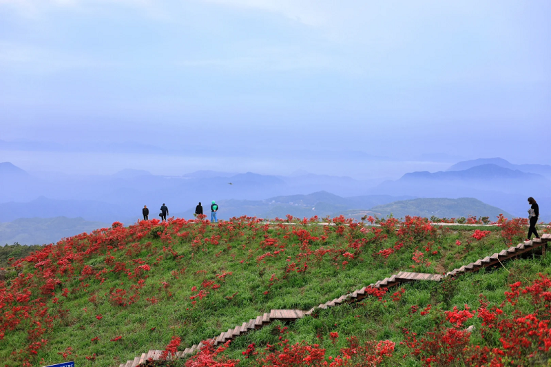 連綿的山巒被杜鵑花海覆蓋,如詩如畫。