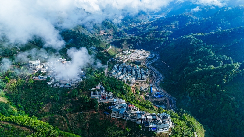 (晨霧間的雙江縣勐庫鎮冰島村。4月17日徐俊/攝)