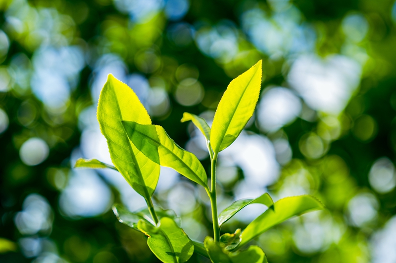 (陽光下古樹茶萌發新芽。4月17日徐俊/攝)